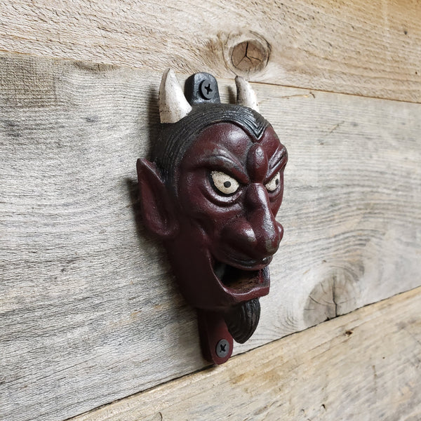 Cast Iron Happy RED DEVIL Wall Mount Bottle Opener