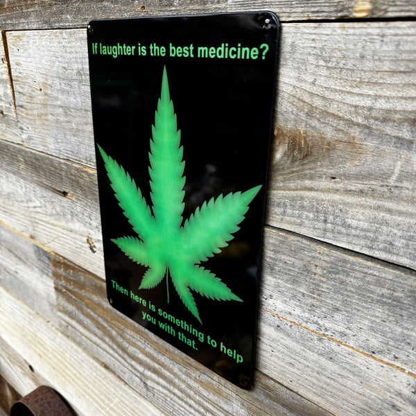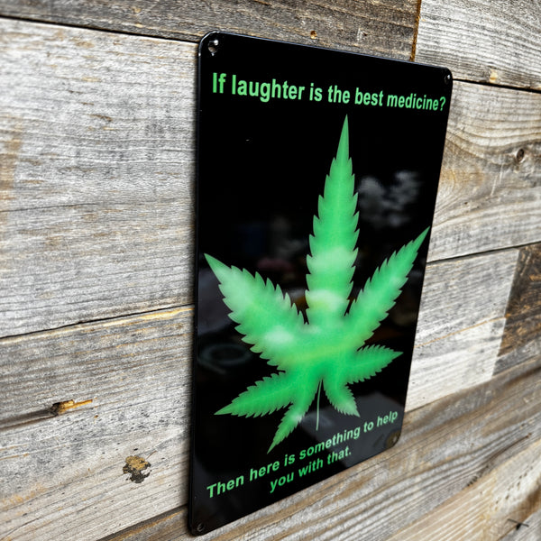 "Laughter Is the Best Medicine" Cannabis Metal Sign – Elevate Your Vibe