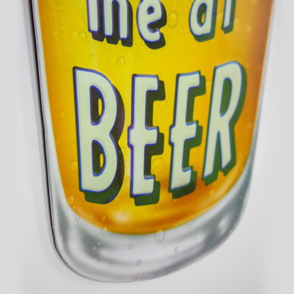 Add some humorous signage to your home bar, man cave, garage or local pub with this embossed metal sign depicting a frosty mug of beer. Whether you are a collector of unique signage or just a lover of beer, this piece is a must have for your wall decor needs.