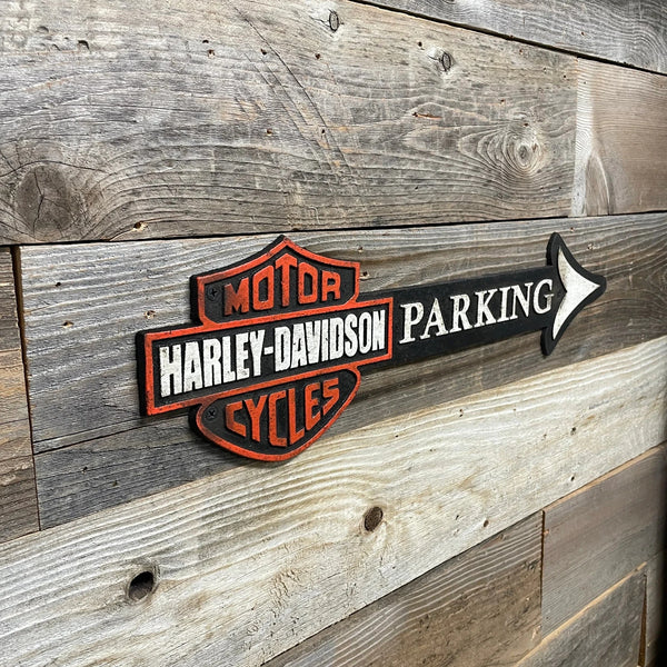 Harley Davidson Parking Arrow Cast Iron Plaque Garage Wall Decor Antiqued Painted Finish